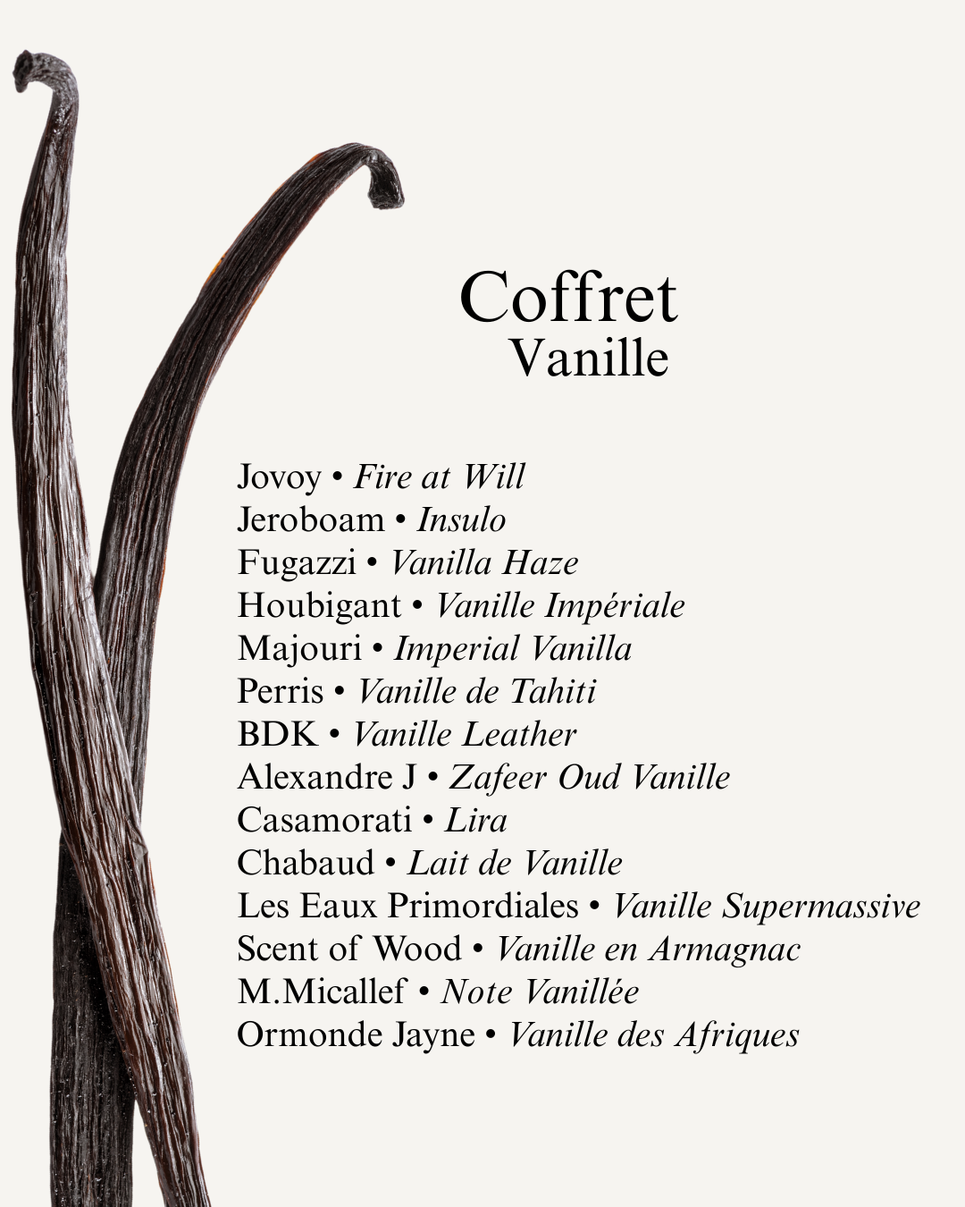 retrouvez les 14 fragrances présentes dans cette box :