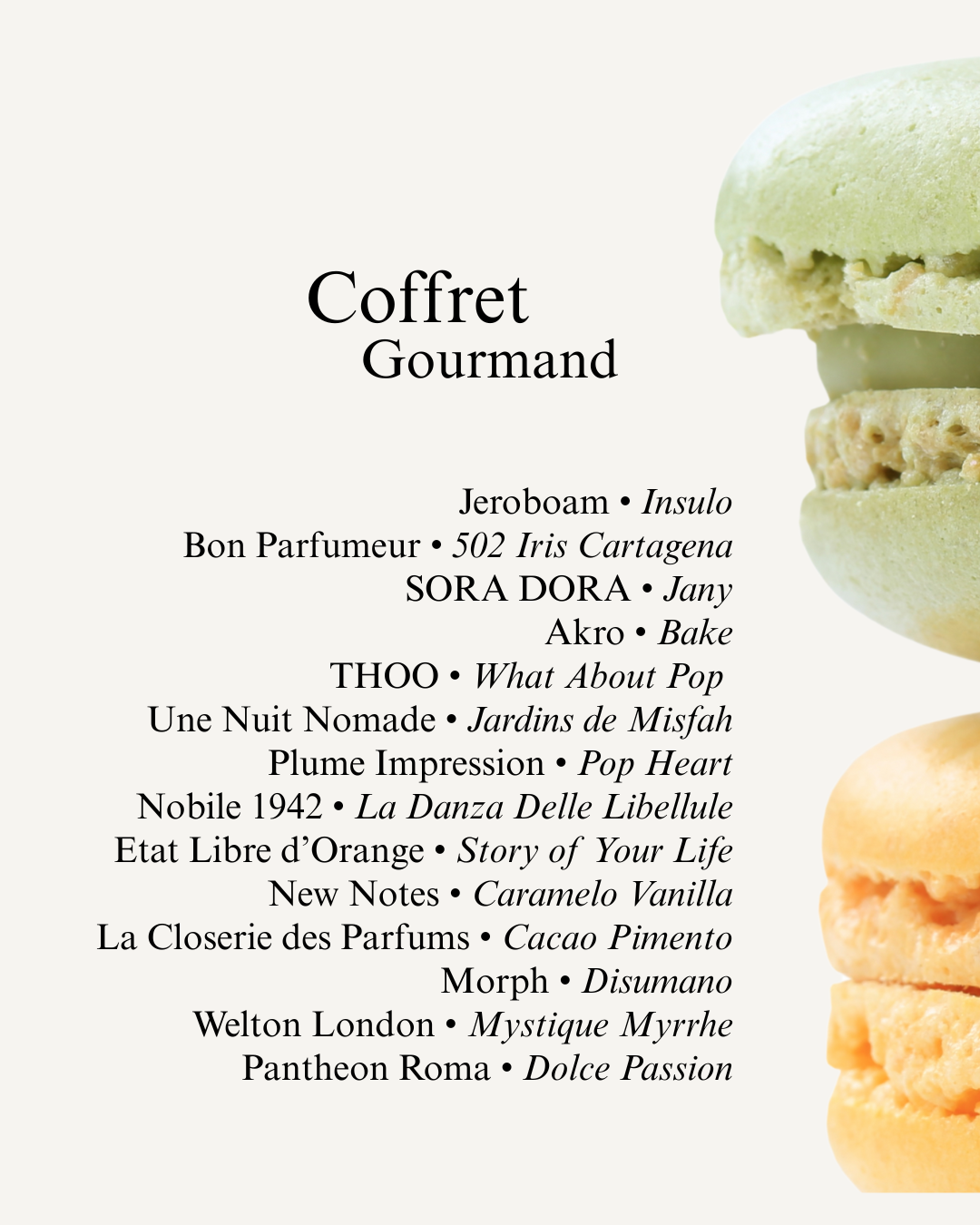 Les parfums gourmands ne se contentent pas de séduire le nez, ils parlent au cœur. À travers 14 créations, ce coffret explore toutes les nuances d’une parfumerie sensorielle et audacieuse.